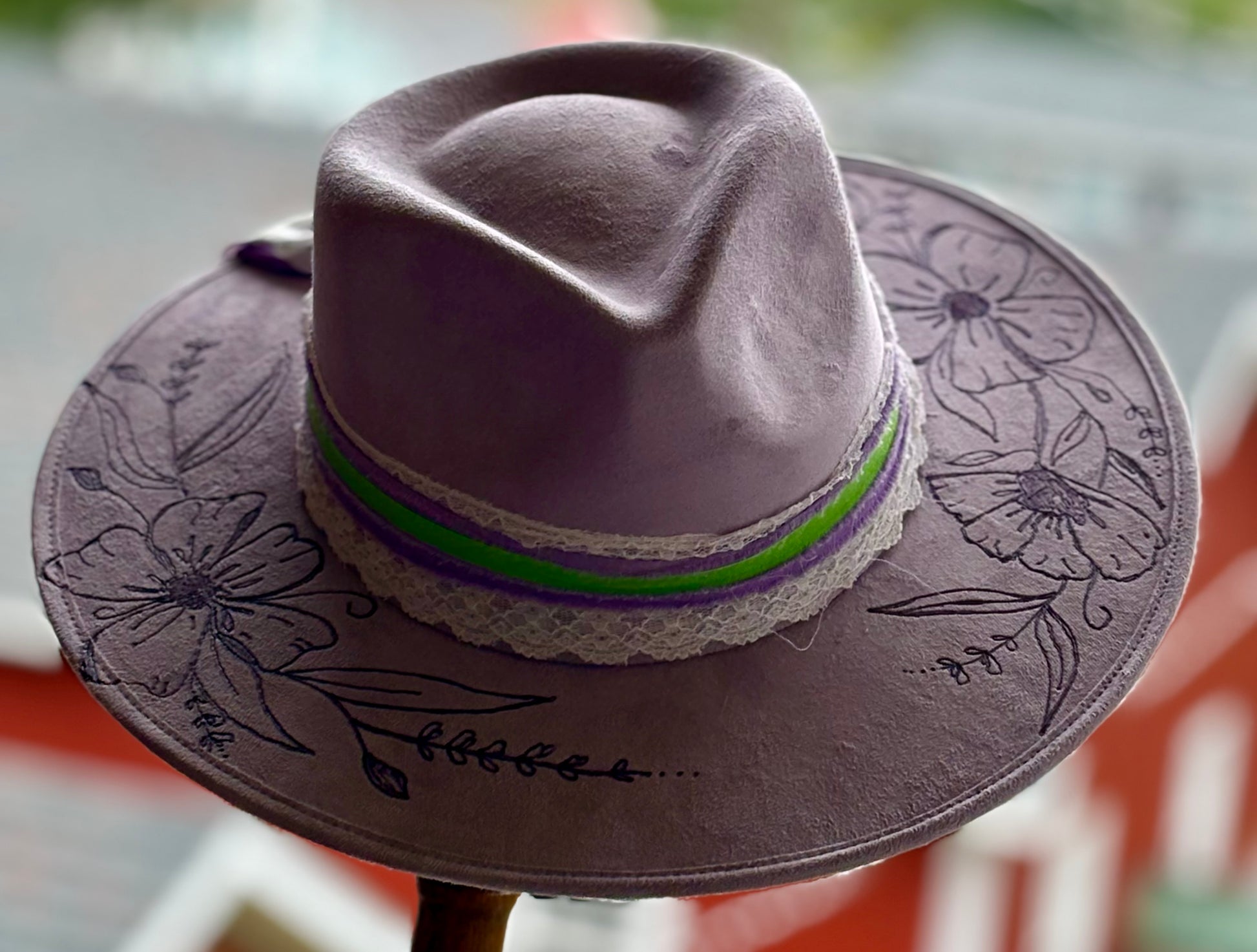 The Lavendar chic floral hat is a fashion statement to be worn anytime.