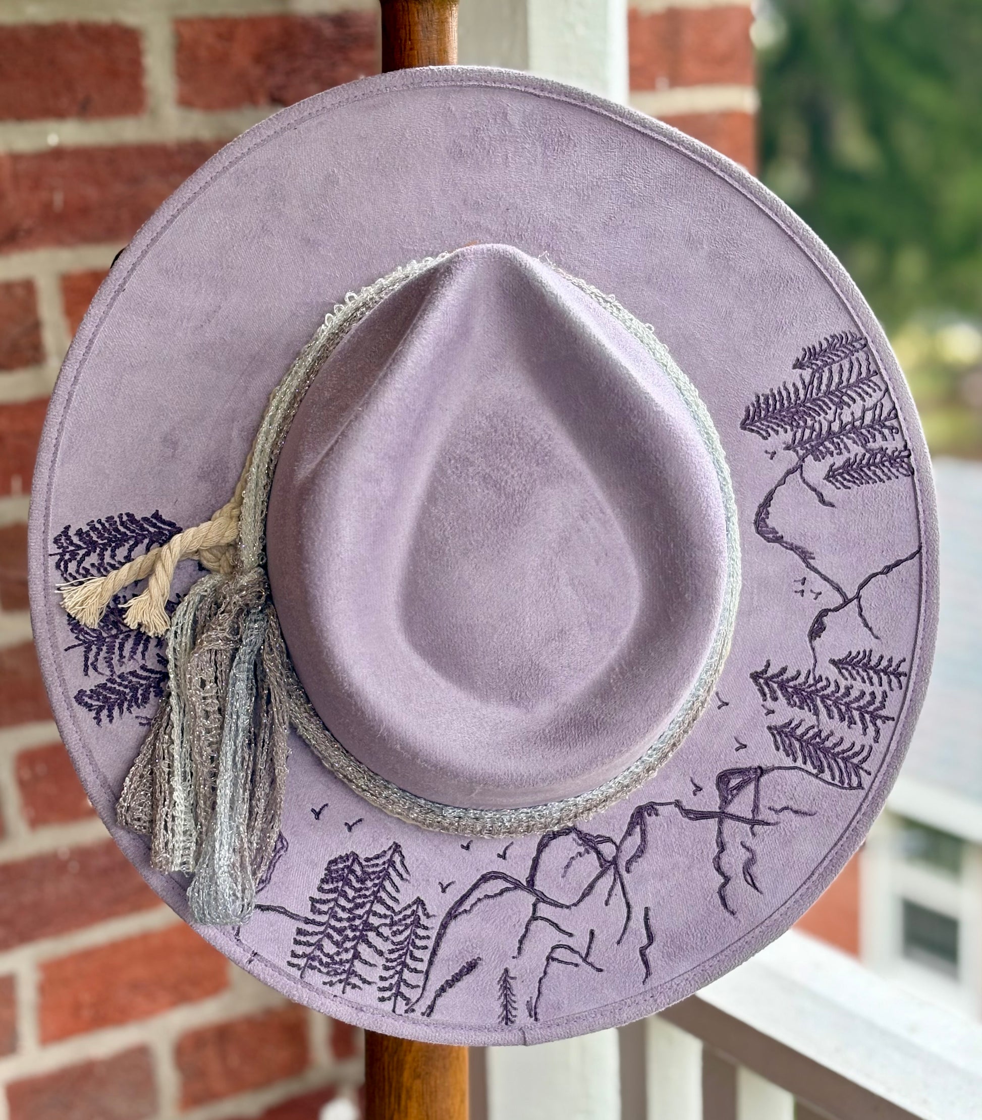 The Lavendar Mountain hat is a free spirit uplifting hat to be worn anytime.