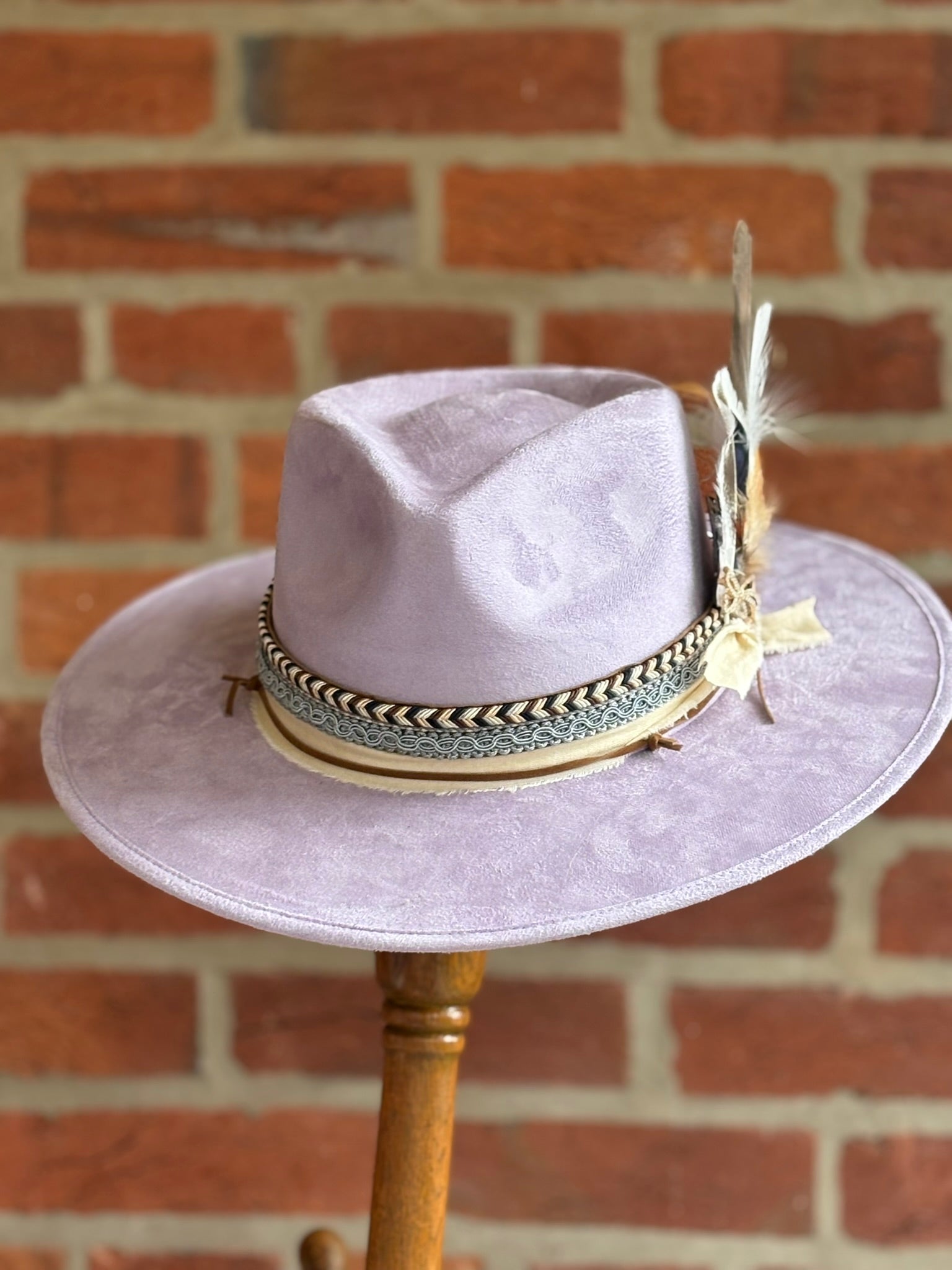 The soft Lavendar rancher hat is classy and elegant in true western style.